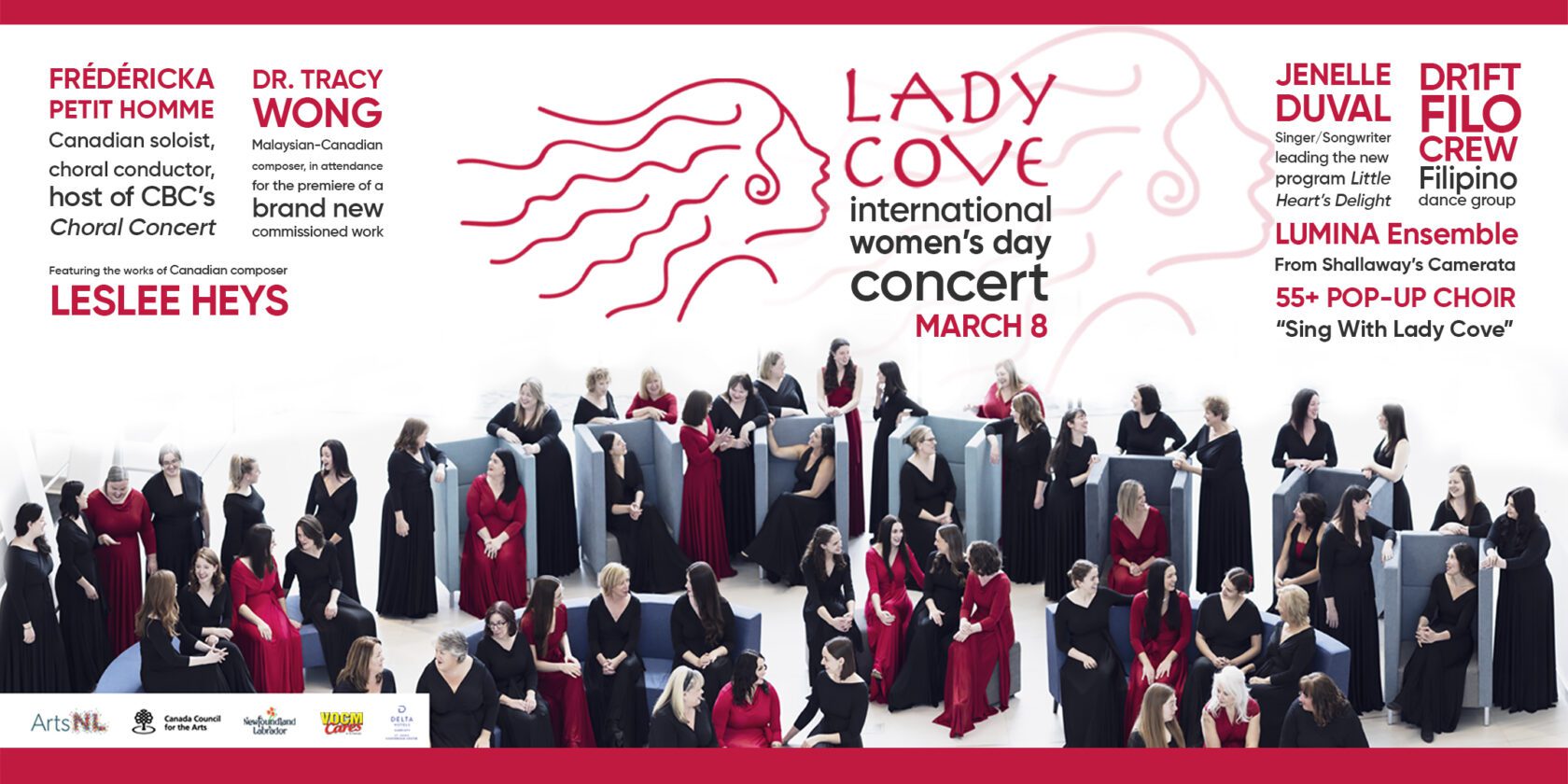 Founded in 2003 by Kellie Walsh, Lady Cove was named after the remote community of Lady Cove on Newfoundland’s rugged yet beautiful east coast. The name Lady Cove is representative of the spirit and philosophy of the Choir: a community – a haven where woman-identified members come, not only to explore their own musicianship, but to share their lives and experiences in a sisterhood.